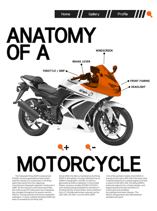 The digital magazine includes a landing page, gallery and a profile page. The contents of the page are mainly user populated, and the featured stories are chosen by the Tread editors. Tread is meant to provide educational material to its viewers allowing for an inclusive space for those with different levels of involvement and engagement with car / automotive culture.